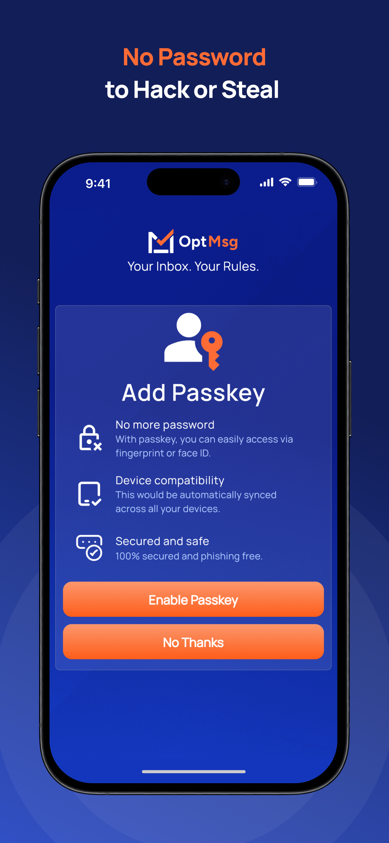 Passwords can be a hassle and a vulnerability. OptMsg offers a passwordless login solution, removing this weak link in security. Imagine never having to remember or reset a password again!